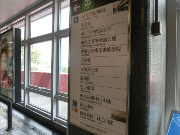 帰りは、色々小道を入っていたら、最初に出た場所を越えてしまったようで、おそらく九龍湾駅のA出口の方に来たと思います。Telford Plazaですかね。