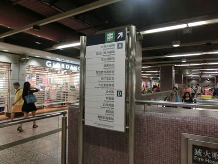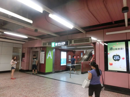 ■太子駅内の案内板を見れば、A出口の一番上に旺角大球場の名前が出ています。