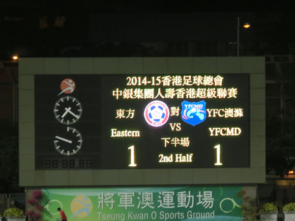 | 2014年10月18日に香港プレミアリーグ イースタンvsYFCMDの試合を観戦しました。ちょうど、タイミングよく、YFCMD(横浜FC香港)の試合を観戦できる旅程で香港に足を運べました。昨年の段階では、このスタジアムは、横浜FC香港がホームグランドとして使用していたのですが、今季からは、イースタンがホームグラウンドとして使用しています。このページの最初の画像でもわかるように、スタジアム自体、イースタンのホームという装飾などがされていて、昨年とは少し雰囲気が変わっていました。香港プレミアリーグでは、試合ごとに若干チケットの料金設定は違うようですが、おおむね一般の大人は、80~100香港ドルということで、大体ここ1年ほどは、1香港ドルは13円~14円の間で推移されているので、1000円~1500円程度ということになりますね。 優勝常連の上位チームや、人気カードの場合は値段設定が高くなるところもあるようですね(参照:香港プレミアリーグオフィシャルサイト) 香港プレミアリーグ自体の観戦は初めてですが、試合自体のレベルは、 あまり高くなかったですね。ただ、新リーグになり、チーム再編などなされたチームや、実際に横浜FC香港もホームグラウンドが変わるなどしているなど、新シーズンなので、今後落ち着いてきたらどうなっていくのかは、読めません。 また、香港のサッカー界の強さのレベルを見る場合には、AFCカップ常連チームである、キッチーや、サウスチャイナの試合を見ないことには語れないと思いますので、機会を見て観戦したいと思います。 実は、試合日の18日の午後に香港国際空港に到着して、旺角大球場で14:30キックオフの試合で昨シーズンリーグ2位のサン・ペガサスの試合があったので、間に合えばそちらにも行きたいと思っていたのですが、さすがに間に合いませんでした。 香港国際空港からエアポートエクスプレスで九龍まで行き、そこから無料シャトルバスで尖沙咀方面にという移動手段をとったことで、バスが遅れたり、渋滞していりで時間がかかってしまったんですね。 電車のみの移動で尖沙咀駅まで向かえば、後半から見られたかもしれないのにと・・・。まあ、仕方ないですが。 |