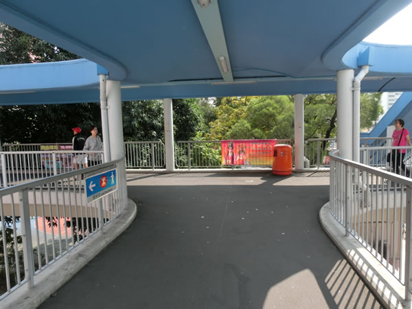 路面電車の上を越えきったくらいのところで、歩道橋のゴールとなります。