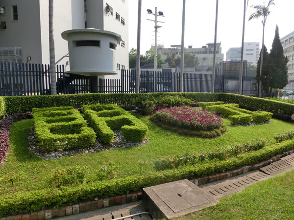 警察署の前には、元朗と植木がきれいに刈ってあったり。