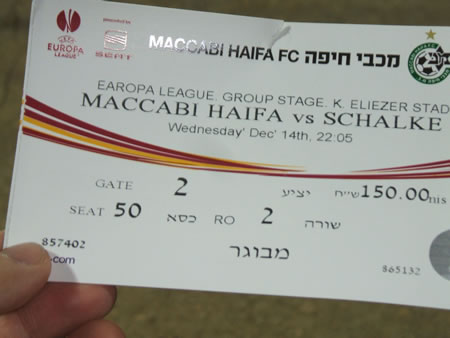 2011年12月14日にヨーロッパリーグ マッカビ・ハイファvsシャルケ04の試合を観戦