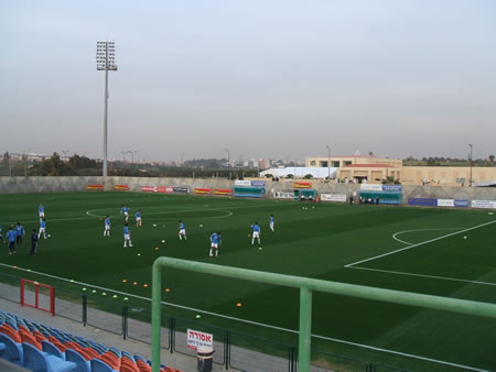 | イスラエル中部のネス・ツィオーナという町にある2部リーグのスタジアム。なぜ来たかと言うと、U18日本代表のイスラエル遠征のU18ドイツ代表戦が行われたからなのです。当初、テルアヴィヴから北方面にあるラーナナという場所のスタジアム開催の予定が前日くらいに急にここになったということで、現地に知人がいたブクメはなんとかその方の助けで行けたのですが、現地の日本人で行こうとした方の多くは情報がわからず間に合わなかったり到着が試合終盤になってしまうという大変な状況だったようです。このあたりは、海外ではよくあることですが、一人だったら確実に行けなかった・・・。最寄りの駅はなく、テルアヴィヴからだと割と時間がかかるものの、大きな通り沿いにあるスタジアムのため、アクセス自体はそこまで難しくないと思います。