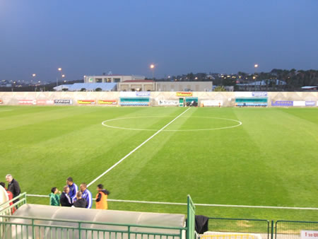 このスタジアムは不思議な作りで座席がメインスタンドのみで、その中でも中心部のみが結構高い位置まで座席が作られていました。説明しにくいので下の写真でなんとなく雰囲気を掴んでいただければと思います。収容人員は3500人だそうです。 | |