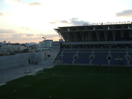 ブクメは、テルアヴィヴの海岸沿いに宿をとっていたのですが、ここからだと駅まで歩くと結構遠いのですが、35分くらい歩いて駅まで行き、電車で20分ほど。電車は12シェケル(250円くらい)でした。 マッカビ・ペタフ・チクヴァとハポエル・ペタク・チクヴァの2チームがここをホームとして今後使用することになるそうです(建設中は、国立競技場となるラマト・ガン・スタジアムをホームとして使用していたとのこと。) スタジアムはゴール裏には座席はなく、メインとバックスタンドのみの座席配列になります。それでも最大で20000人収容ということで、結構列数は多く一番上からだと眺めがかなり良いです。 テルアヴィヴに旅行して、リーグを見たいということであれば、このスタジアムはお勧めです。 | |