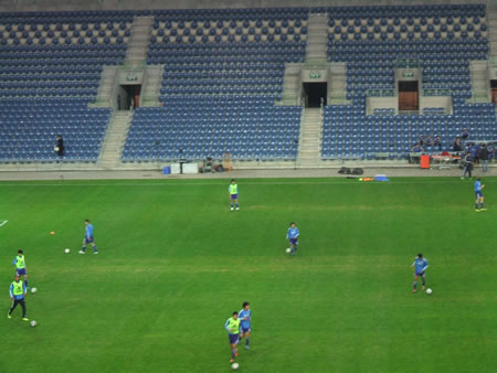 ■キックオフ。メインスタンドはVIPのみでガラガラに見えますが、写真を写したバックスタンド付近は結構人が入っています。