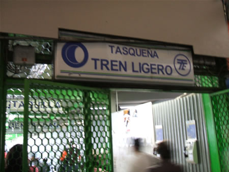 ■路面電車乗り場。地下鉄であれば、降りるまではどこまで行っても均一料金(1回3ペソ)なのですが、路面電車は別になりますので、別途切符の購入が必要です。路面電車も3ペソになります。それでも、先ほどのインスルヘンテス駅からアステカスタジアム駅まで片道50円しないわけです。ちなみに、インスルヘンテス駅から乗り換えのタスケーニャ駅までは30分ほどの所要時間でした。タスケーニャ駅~アステカスタジアム駅は所要15分ほど。