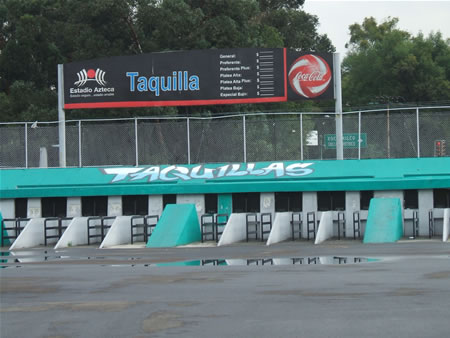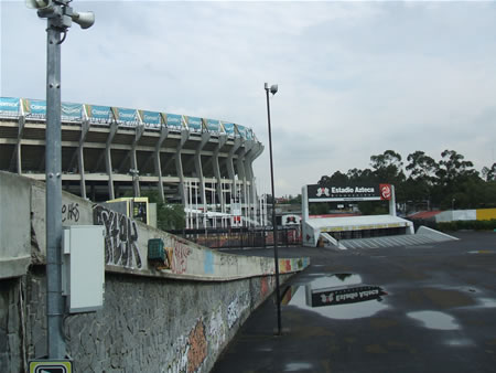 ■アステカスタジアム到着です。試合のあるときは駅から直接このエリアに入れるようですが、この日は閉まっていたので一旦出てから、空いているところから入りました。
