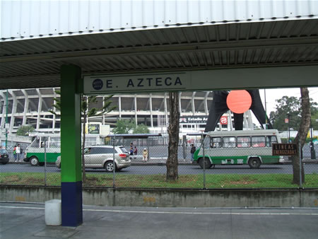 道のり | 地下鉄2号線の終点タスケーニャ(Tasqena)駅で路面電車に乗り換えて15分ほどでアステカスタジアム(E.Azteca)駅に着きます。 駅の目の前がスタジアム |