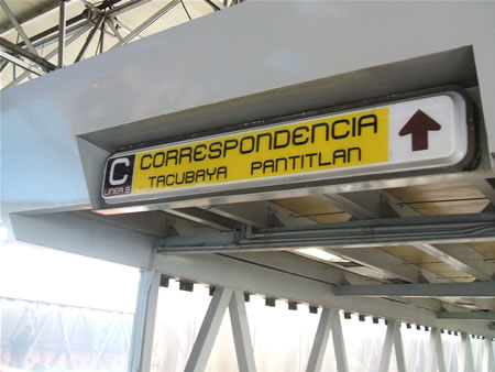 ■地図で見るとバスなどで横に移動できれば割とアステカスタジアムから近そうな印象もありつつ、ここはあえて電車で行きます。地下鉄2号線チャバカーノ(Chabacano)駅から9号線に乗り換え3号線に乗り換えられるセントロメディコ(Centro Medico) 駅へ向かいます。写真は乗り換えの方向を示した看板です。