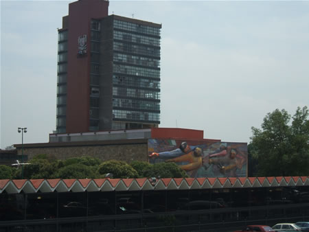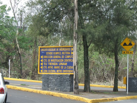 事前にある程度調べていて、大学敷地内の無料バスで近くまで行くことも可能とは分かっていたものの、徒歩ではどのくらいかかるのかと調べてみたかったので恒例の(?)スタジアムまで歩いてみようをやってみました。 大学の外の道をず~と歩くこと・・・1時間程度で到着。思った以上にこの大学は広かったです。そして、敷地内ショートカットを考えずに大学を囲う道をずっと歩いたのでかなり遠回りになりました。 インスルヘンテス周辺からの場合は、メトロバスでC.U.駅まで行った方が確実に近いと思います。 UNAMの中央図書館の道を隔てた反対側がオリンピックスタジアムになるのですが、信号がないため車が多い通りを隙を見て渡るのもやや怖いのですが、それで渡るも良し(良くはない。)実際は、この道の下に地下道があるのでそこから容易に行き来することが出来ます。 行きはそんな感じで1時間ほどかけて歩き、帰りは大学敷地内をショートカットして行くとどうなるだろうと歩いてみた所、やや迷いながら30分ほどでもう一つの最寄り駅となるコピルコ(Copilco)駅に着きました。 | |