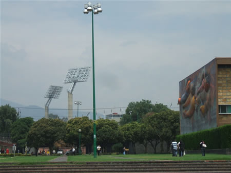 | メキシコ国立自治大学(UNAM)の敷地内にあるスタジアムということで、とりあえず大学まで行けば大丈夫だろうと気楽に行ったら大失敗したスタジアムです。最寄り駅を考えると地下鉄3号線終点のウニベルシダ駅でよいだろうということで、移動。到着してビックリの広大な敷地を持つUNAM。