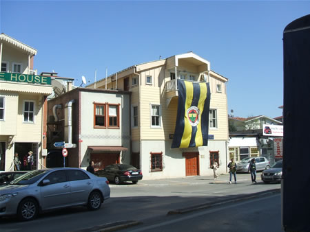 ■スタジアム付近の住居に掲げられた大きなフェネルバフチェのフラッグ