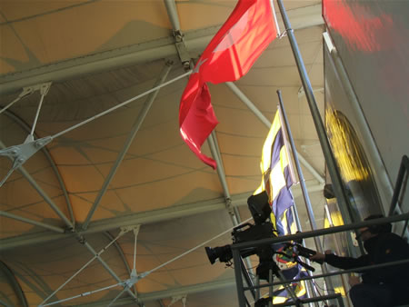 ■横断幕が広げられました。ゴール決めろよ的なものだと思われます。